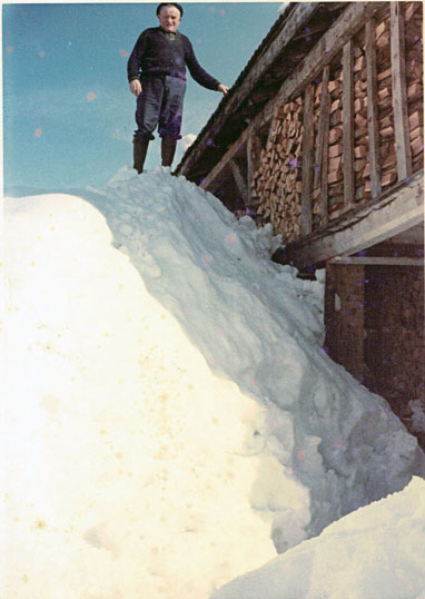 Ci-dessus à droite, un photo témoignant cette fois d'un hiver où la neige était tombée abondamment, prise à Monnetier. L'on y voit Charles Ducret-Butte (décédé en 1984) debout sur la neige atteignant le toit de sa maison !