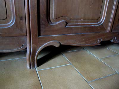 ainsi que, une jolie table aux pieds galbés réunis en un imposant motif central escamotable (voir la photo sur plaque ci-dessus) et, non présenté dans ce site, une petite table ronde, un lutrin à Giron, une bibliothèque, une autre sellette, etc.