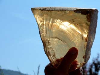 A Champfromier on ne disait pas strass, mais tout seulement "masse de verre", ce qui se justifie bien puisque cette expression qualifie le verre à sa sortie du moule de sable dans lequel elle a été coulée (et dont on voit des traces à l'extérieur). On se souvient encore que ce verre était brisé et coulé dans de tous petits moules à la forme de la verroterie à réaliser. Monsieur Amand Camas (ancien meilleur ouvrier lapidaire de France) appelait la matière elle-même (petits morceaux refondus prêts à être taillés) du "FAUX", par opposition à la pierre de synthèse ou synthétique appelée par les lapidaires jurassiens du "SCIENTIFIQUE" !