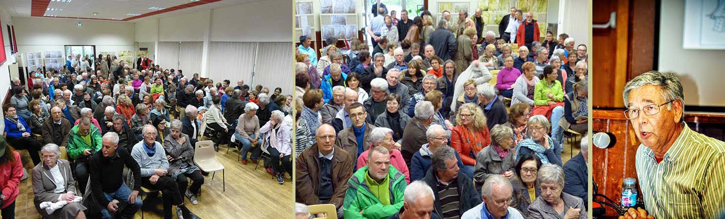 Quelques commentaires : "Cher Monsieur, J'ai beaucoup apprécié votre présentation d'hier et vous en félicite. Je suis pleine d'admiration pour vos trouvailles, c'est remarquable..." ; "Je n'avais jamais pensé aux comparatifs avec les parcellaires pour dater les chemins... Bravo !" ; "Très bonne conférence. Très claire" ; "Vous m'avez bluffée" ; "Rien que pour les cartes, magnifiques et toutes nouvelles, ça valait le déplacement" ; "Une salle comble, jamais je n'avais vu autant de monde pour une conférence, le sujet intéresse les gens !" ; "Totalement convaincu" ; "Quelle belle passion vous avez et merci de nous en faire profiter !" Voir quelques autres photos.