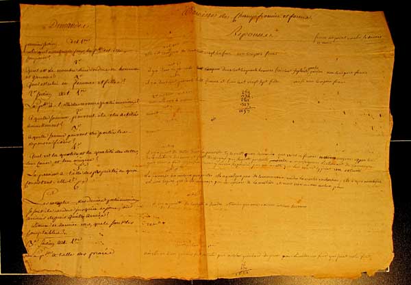 Art. 4. Date de la vente, son prix et le montant des deniers remis au receveur. Nous l'avons rapportter cy-dessus et la réponse de cet article se trouve faitte dans les articles précédents.