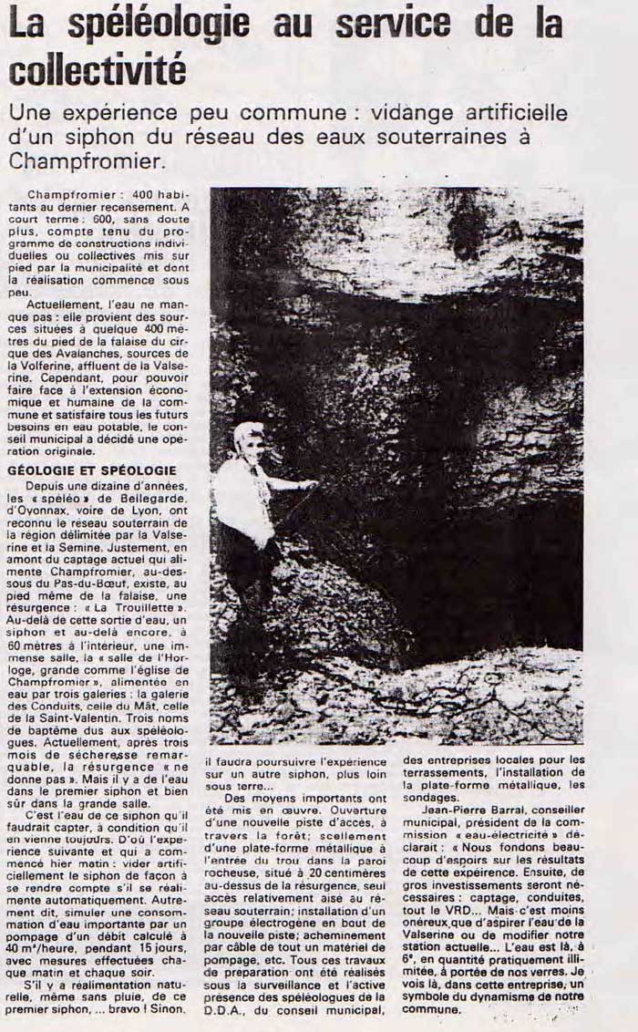 La presse locale n'a pas souvent relaté les activités spéléologiques. Toutefois elle s'en et fait l'écho quand elle fut au service de la collectivité et qu'il fut envisagé, en septembre 1990, de capter de nouvelles masses d'eau disponibles à la Trouillette pour l'alimentation en eau potable de la commune.