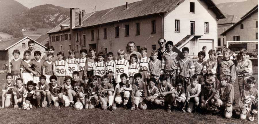 Le groupe photographié est un plateau de débutants, avec Chatillon de Michaille (on ne disait pas encore "en michaille"), Bellignat et l'Entente Sportive du Haut Bugey.