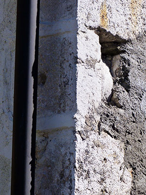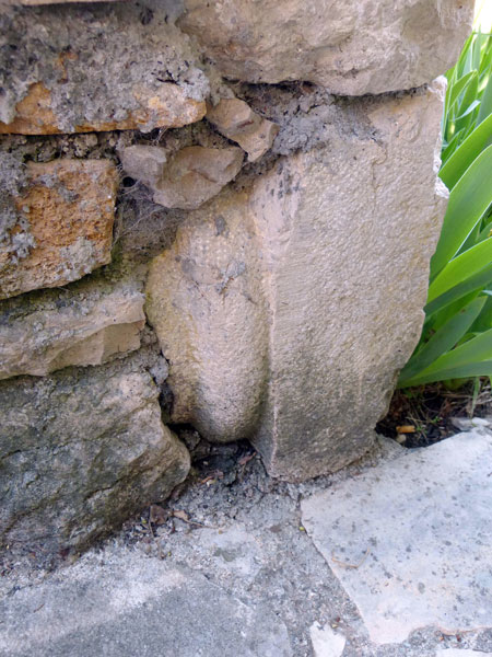 A signaler qu'à l'arrière, cette maison et sa voisine ont chacune leur mur pignon, mais formant un angle pincé si étroit qu'une photo, ou même une observation rigoureuse, sont impossibles. Mais des pierres taillées (mur de la maison voisine) semblent bien témoigner d'une ancienne fenêtre à meneaux !