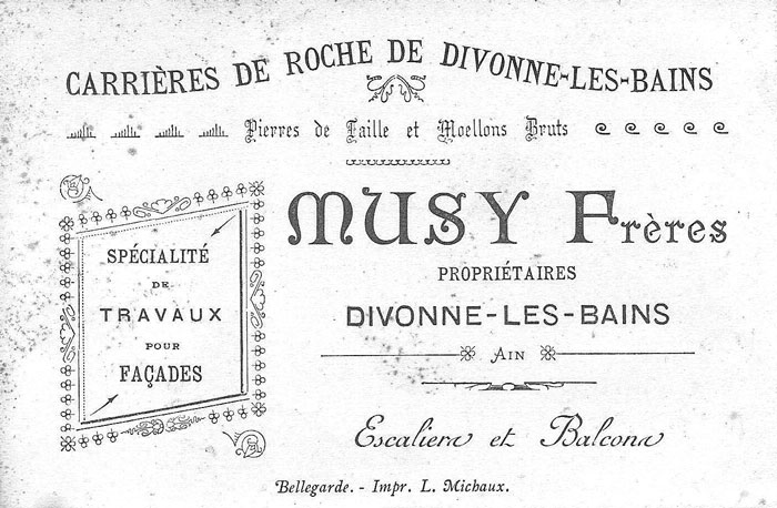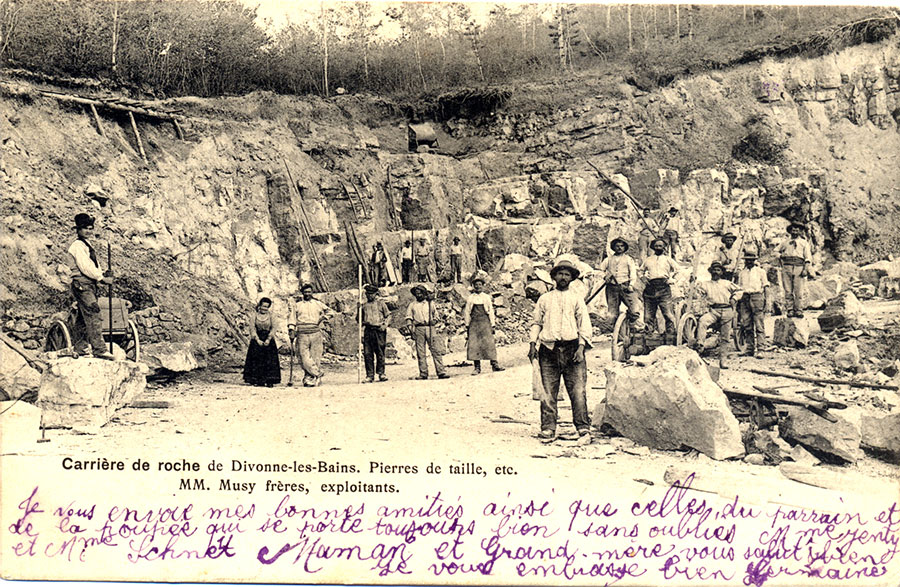 On connaît une vue de la carrière du Mont-Mussy plus ancienne que celle de la photo privée de 1907. Elle est représentée avec son personnel sur une carte postale, où l'on ne dénombre encore que 17 personnes (dont une femme).