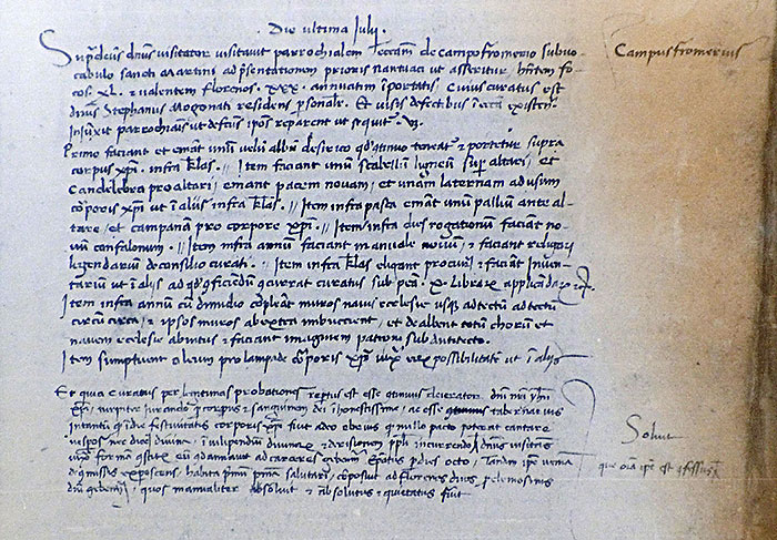 Supradictus dominus visitator, visitavit parrochialem ecclesiam de Campofromerio,