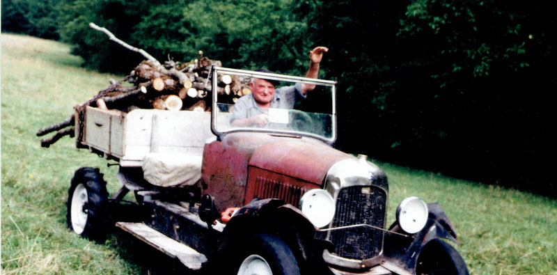 A Champfromier, on ne voyait que très rarement des tracteurs neufs, et pas même de vrais tracteurs ! Si l'on n'avait ni bœufs ni de gros moyens financiers, la période des automobiles venue, on récupérait de vieux véhicules et on leur donnait une seconde vie en les aménageant en tracteurs agricoles, sous le nom local de "traclets".